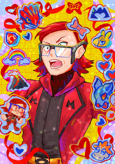 Dynamic , bright colored pop-art style idk. Comes with transparent version with separated elements.